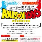 2015年8月2日 未分類イベントイベントレポート by 管理者. 1日土曜日 スピンギアの下のらしんばんさんでヨーヨーとアニソンのフュージョンイベント 2日日曜日 アトレ秋葉原の一回入り口でヨーヨーパフォーマンス。一日中ヨーヨーをしてたのでたくさんの人に見ていただけました。 週末は秋葉原でヨーヨー世界大会の告知をしてきました!少しでも多くの人に世界大会を見てもらいたいと思います。 前の記事 次の記事