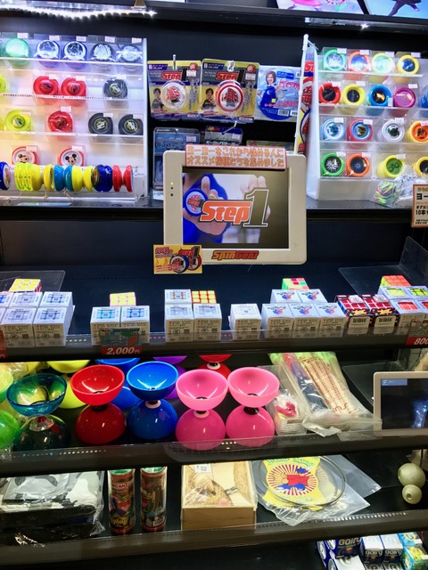 ヨーヨーはもちろん、ディアボロ、ジターリング、ボール、ケンダマ、キューブ型パズル、コマ、スピントップなど。