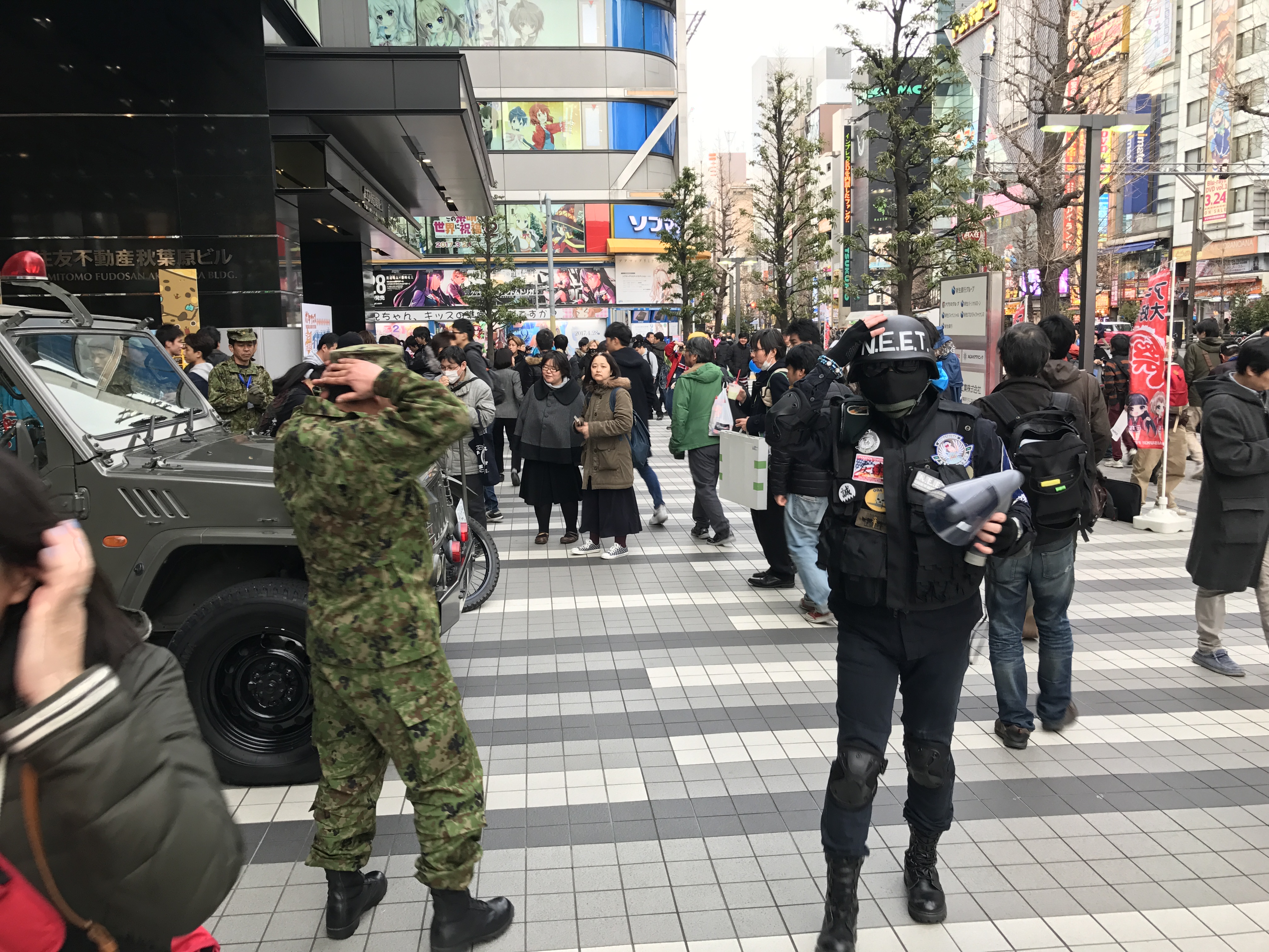 ブースでも外でも自衛隊とNEETが常に隣り合っていたのは日常と非日常の境目、秋葉原ならではの光景