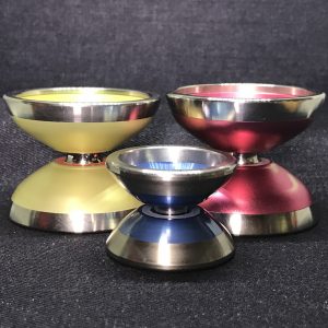 プレイヤーとしても、Modder(改造者)としてもカリスマだった彼がダンカンのSEラインナップとしてデザインしたのがEXIT8です。当時はサイズAでフリクションステッカーを張るのがダンカンのヨーヨーのアイデンティティのようなところもあり、本人もサイズCでEXIT8を設計するのが悲願で、図面まで完成していました。その志を引き継ぎ、モノメタルではなく、バイメタルで2016年に最新型として登場させようとしたのがこのプロジェクトの出発点でした。