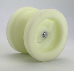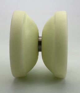 プラスティックのヨーヨーは金属とは異なり、設計の段階で想像力を巡らせ、作っても素材選択、ベアリング周りの構造(ボルト・ナット・パッド)、に加え、工場のコントロールですが、ゲート位置、プラスティックを入れる圧力(機械の性能に依存)や冷やす時間と収縮率など様々な要素が絡み合い、想定どおりに仕上げるにはノウハウの蓄積が必要になります。