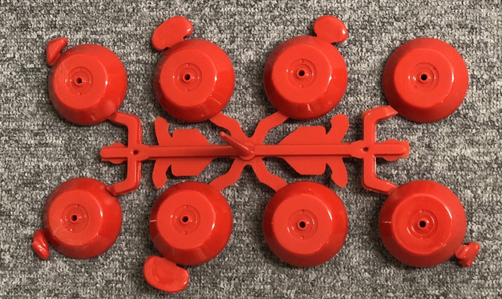その時にランナーと部品の切り取りをした箇所が白くなり、時に出っ張っていることが見受けられます。カッターやニッパーで切り離せばそこまで汚くならないですが手でちぎってヤスリで仕上げるような作り方をしている部品もあります(ヨーヨーということではなく)。ランナーからの切り離しは通常、生産効率を重視して設計されています。