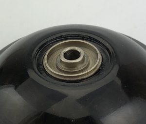 ・ベアリングはサイズC。ハーフスペックと呼ばれる薄型ではなく、フルサイズのサイズC。ハーフスペックは戻りの良いヨーヨーを作る上では特効薬のように重用されていますが、プラスティック機種でメタルほど回転力が期待できないヨーヨーの場合、遊んでいる途中で空転が止まることがあったり、ギャップが狭すぎて遊びにくいということがあります。