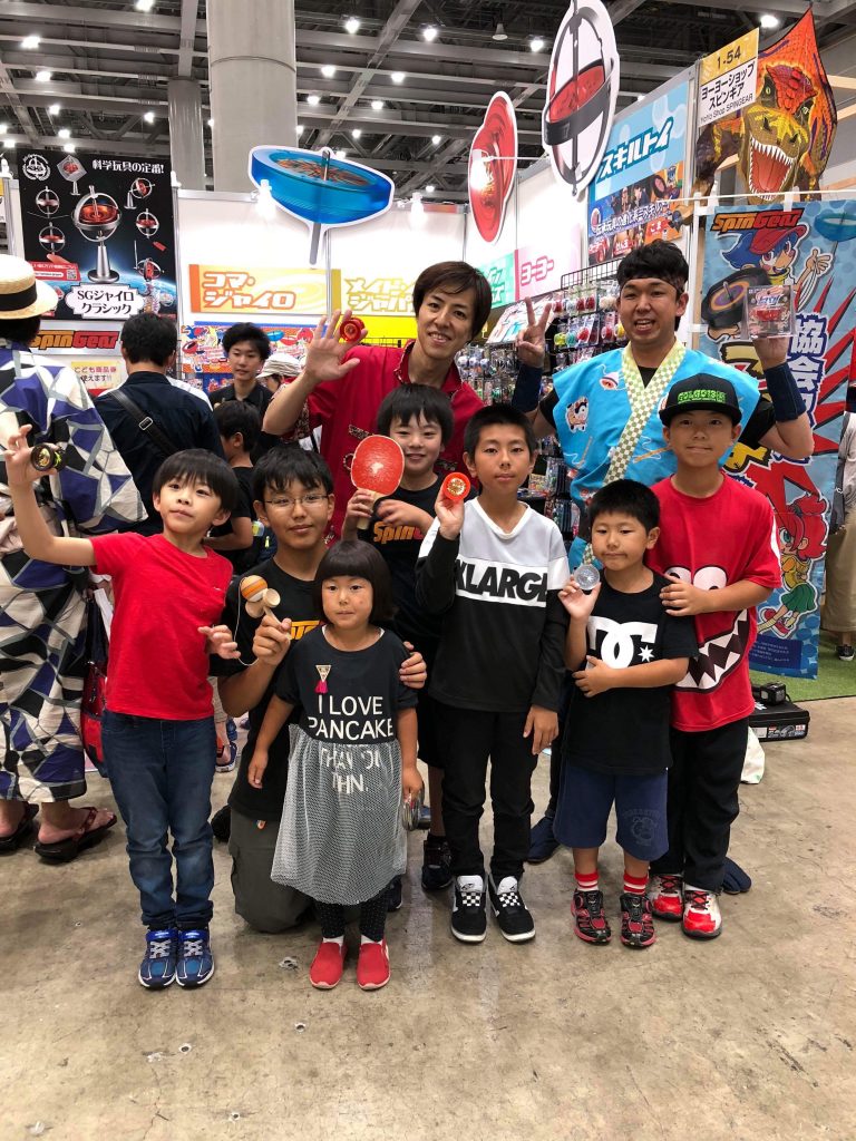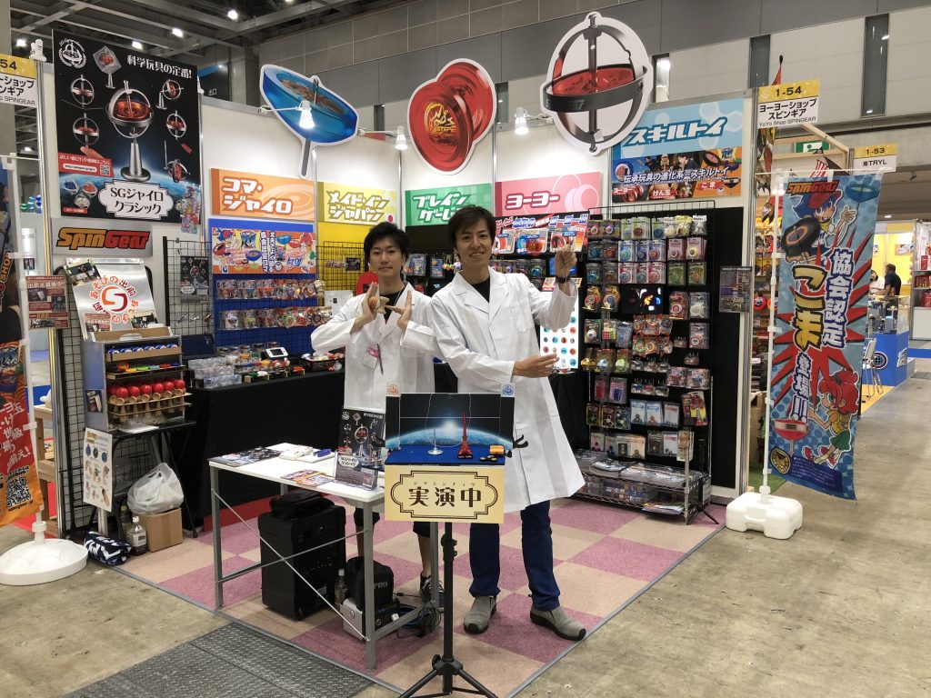 スピンギアブースでもヨーヨーとこま、けん玉のパフォーマンスと販売を行い、多くの子供達にスタートラインに立ってもらうことができました。特にステップ2に人気が集まっていました。