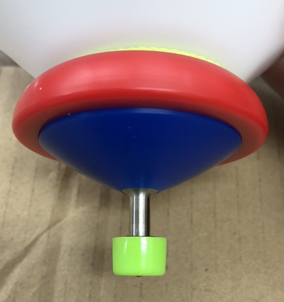 このベアリングはこまで言う角軸と同じ効果があり、紐が外れにくくする効果もあります。また手のひらに載せたときに斜めの状態でもベアリングが受け流してくれるので手に対する衝撃と摩擦を軽減してくれます。