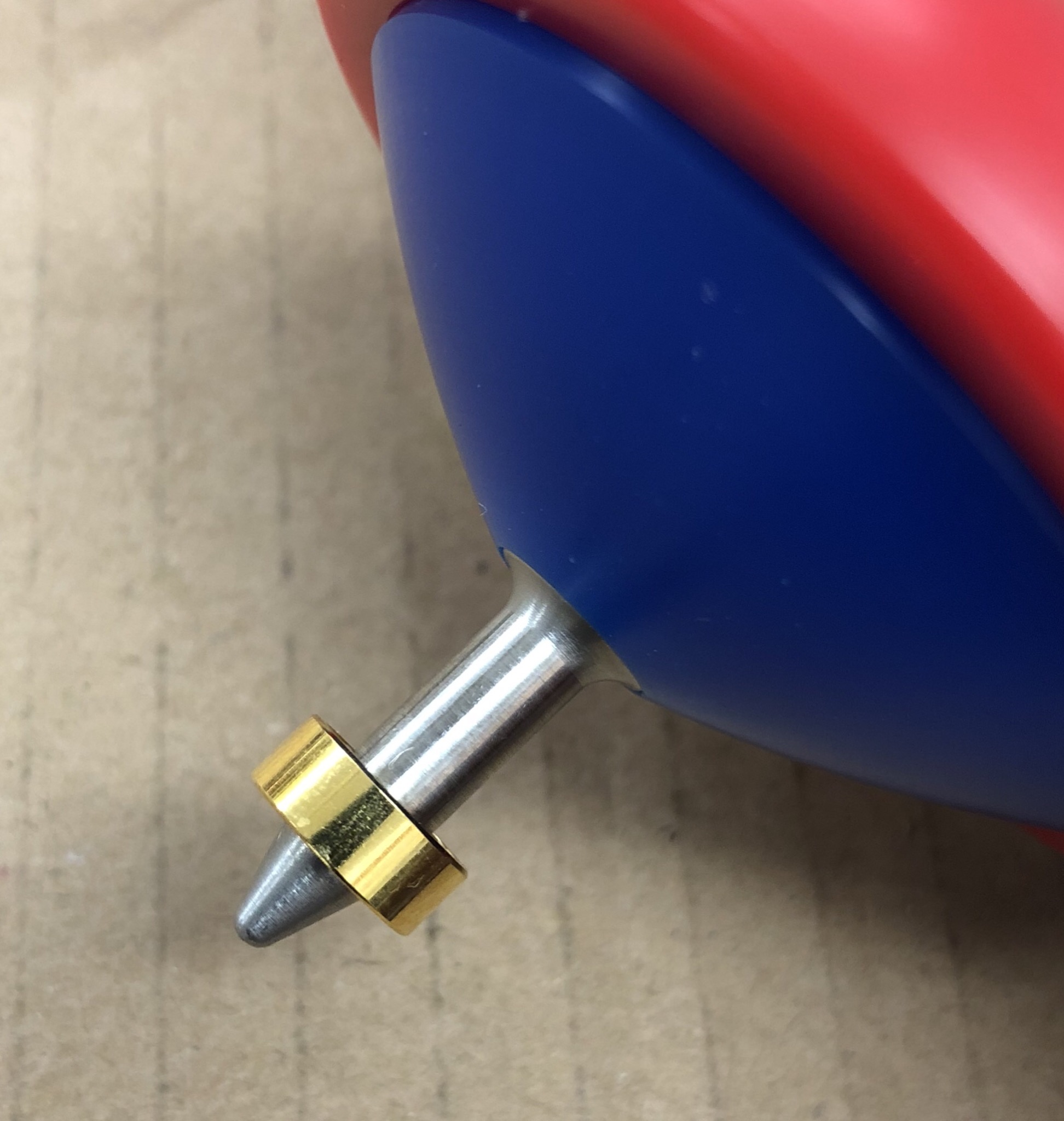 このベアリングはこまで言う角軸と同じ効果があり、紐が外れにくくする効果もあります。また手のひらに載せたときに斜めの状態でもベアリングが受け流してくれるので手に対する衝撃と摩擦を軽減してくれます。