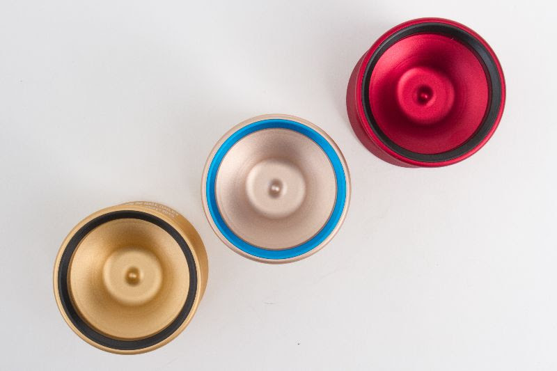 ヨーヨージャム以降、あまり追求されてこなかった理論的には最強のプラスティク+メタルリム構造。ほぼ金リム構造のヨーヨーがナインドラゴンンのシェルを流用することで実現できました。全重量の50%以上を外に振ってあるというプラスティックヨーヨーでは考えられない構造。力強い回転とプラスティック機種の見た目の良さがあります。