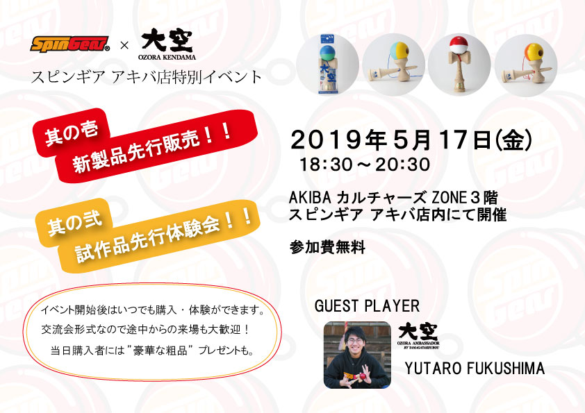 大空新商品!アキバ店では今夜イベント先行販売! 2019年5月17日 けん玉 イベント告知 入荷情報 by AKIRA. 本日アキバ店にて開催のイベントで販売する新モデル! 販売価格は3,672円(税込)です。 web販売も近日中に開始予定となっておりますので、ぜひ引き続きスピンギアブログをチェックしてみてください♪ 前の記事 次の記事