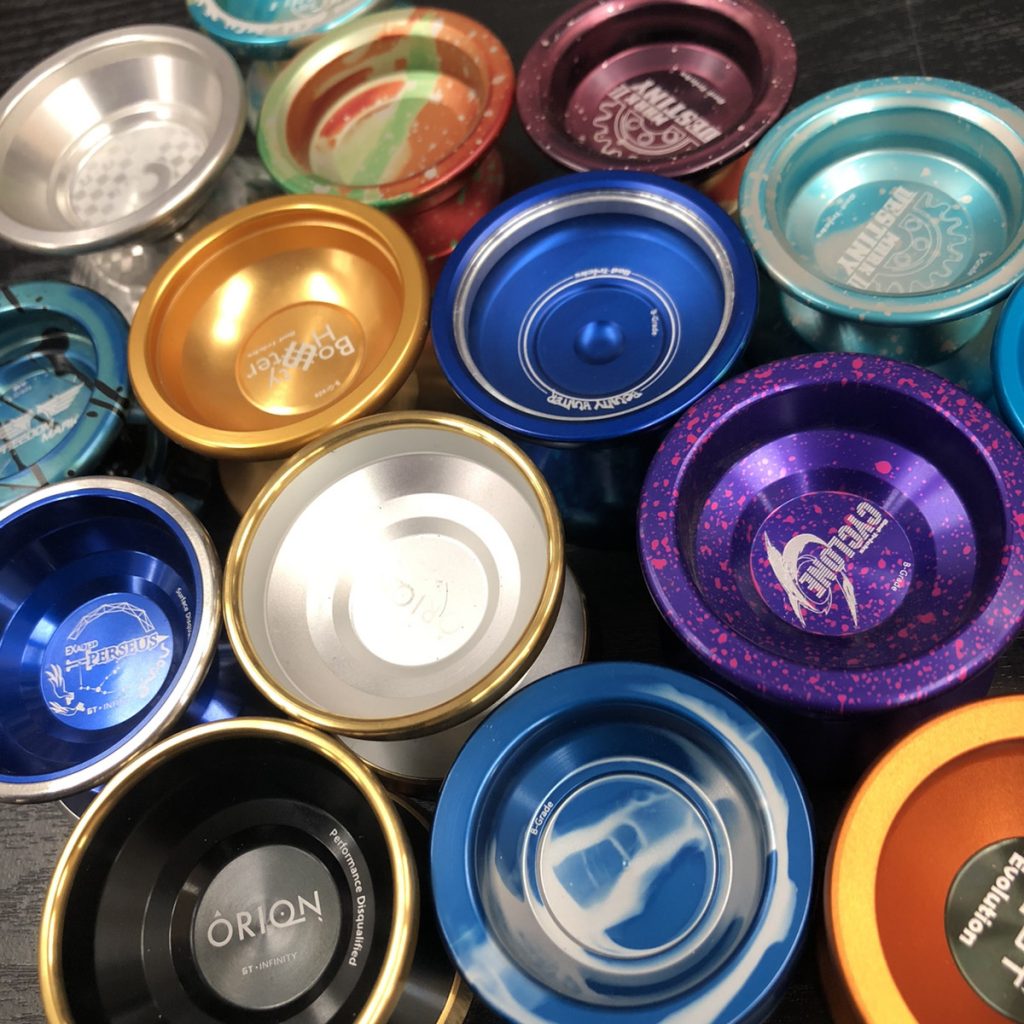 総数50個以上、旧作から現行機種、ちょっとレアなヨーヨーや変わったロゴ、限定版などよさげなものからなくなっていくと思うので早いもの勝ち