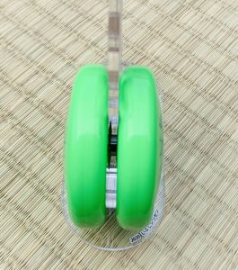 ありがたいことにスタッフの想定を超えて皆さんに浸透したスピンガジェット。第二弾の新色もまもなく入荷ですが素材の問題で、初期ロットに軸回りの破損が発生していたグローをヨーヨーの日記念で放出。初心者向けヨーヨーであれば軸回りの破損は発見できないはずなのですが購入者の大半の方がおそらく遊ぶよりも先にキャップを外したり分解したりしている率が高く、早期の段階でクラックが発見できたため、発売を差し止めていました。とはいえ、初心者向けとして遊ぶ分には遊べるのと割り切ればキャップやアクセルの部品取りに使えます。
