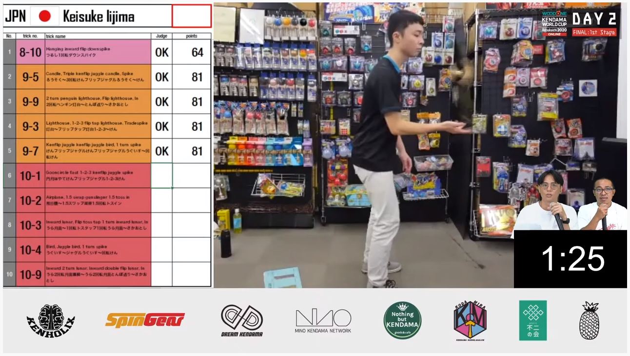 選手の構成表がYouTubeライブで画面端に表示され、どのトリックを成功していていま何の技に挑戦中か、あと何個トリックが残っているかがリアルタイムで反映されるので視聴者にとても分かりやすくなっていました。(画面を操作する主催者側はとても大変だったと思います。運営の皆様ありがとうございました&お疲れさまでした。)