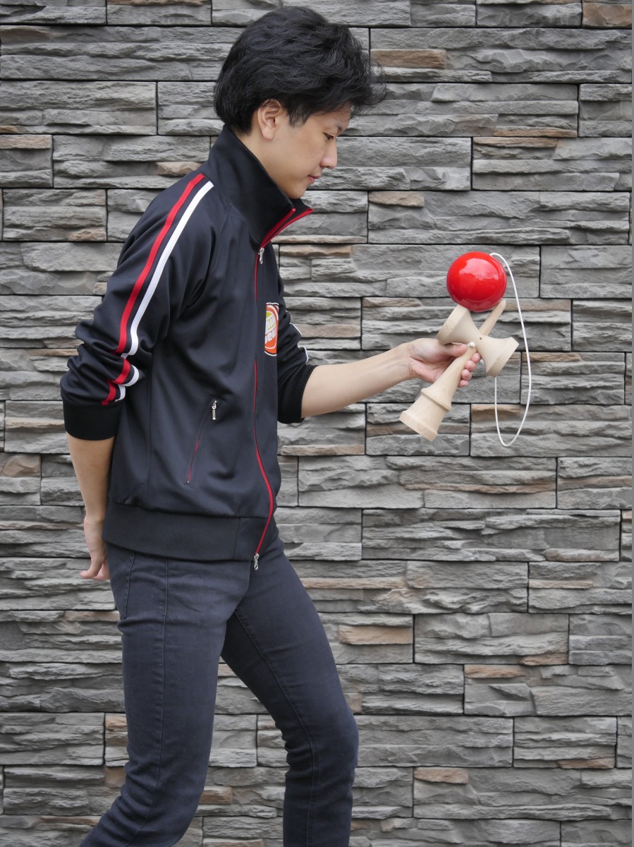 けん玉入荷ラッシュの中ちょうど大空アンバサダーの福島優太郎選手が来社してくれたので、ぱぱっとYouTubeサムネイル風に写真を撮らせてもらいました。