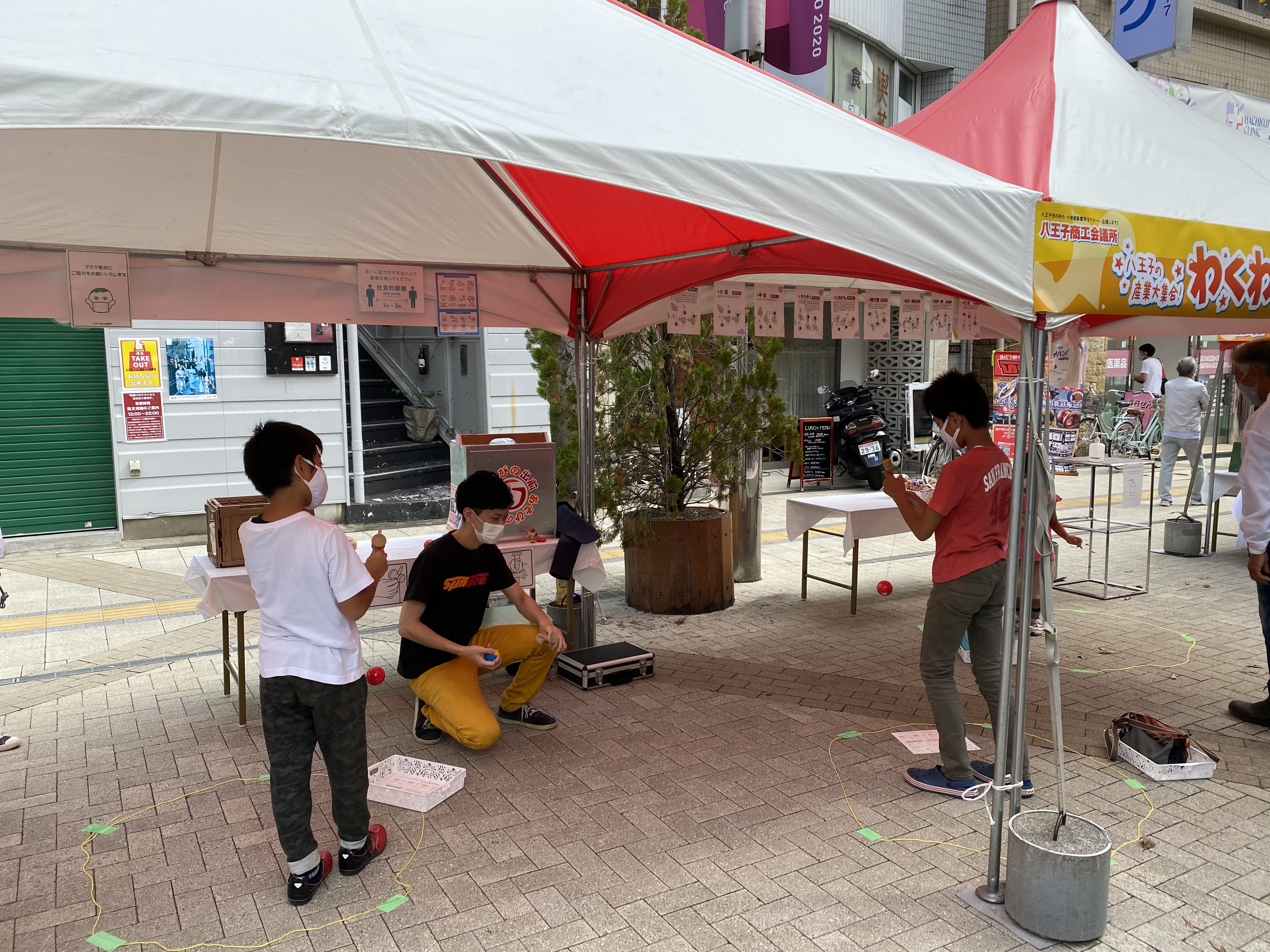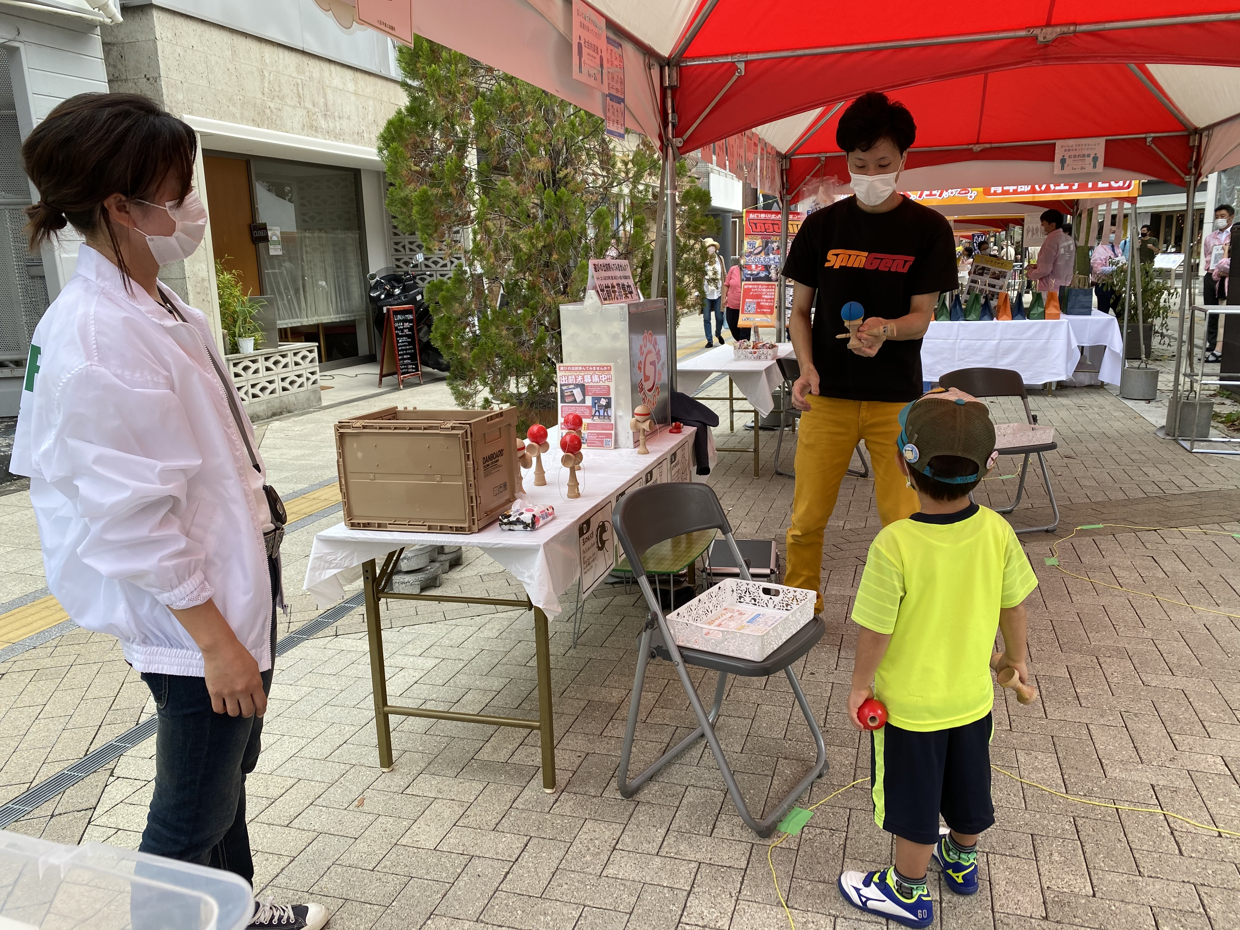 先週のイベントになりますが、八王子商工会議所主催のイベントにけん玉体験コーナーで遊びの出前をしてきました。