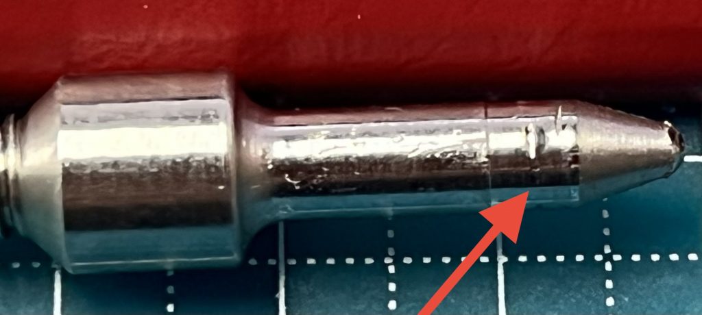 ボーダレスのスパイクモード、いわゆるスピントップ状態ですが、先端が尖っていることと、返しがないのでスルッと落ちてしまうことを避けるためにサイズAのベアリングを圧入することができるようになっています。