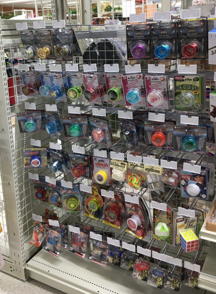 店舗により内容が異なります。写真はスピンギアのお膝元、八王子めじろ台店のルーピングスター導入前のもの。おもちゃコーナーを歩いているとふいに目に入るのでドン・キホーテ店内の発見する楽しみをヨーヨーなどのスキルトイでも味わえます。