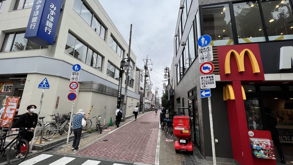 新高円寺駅から来る場合はマクドナルドとみずほ銀行の間の通りがルック商店街となっています。