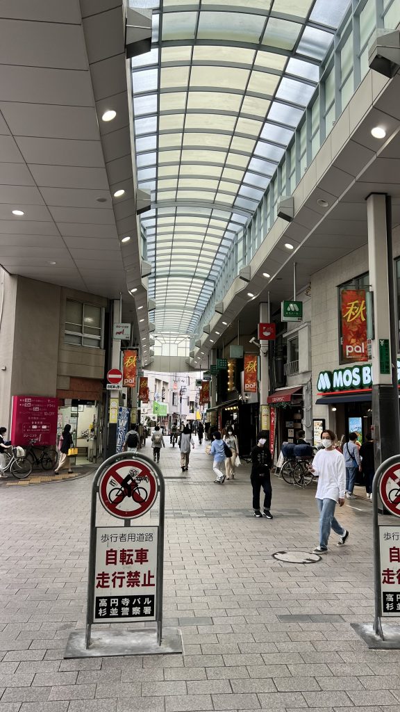 高円寺南口で降りるとロータリーがあり車の通る大きな道がありますがそちらではなく、アーケードのある商店街、パル商店街を目指してください。