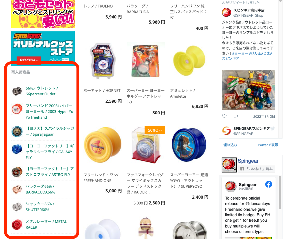 今週は66%、ダンカン、ハイパーヨーヨーなどの再入荷(あるいは倉庫を整理して出てきた商品)が多かったです。