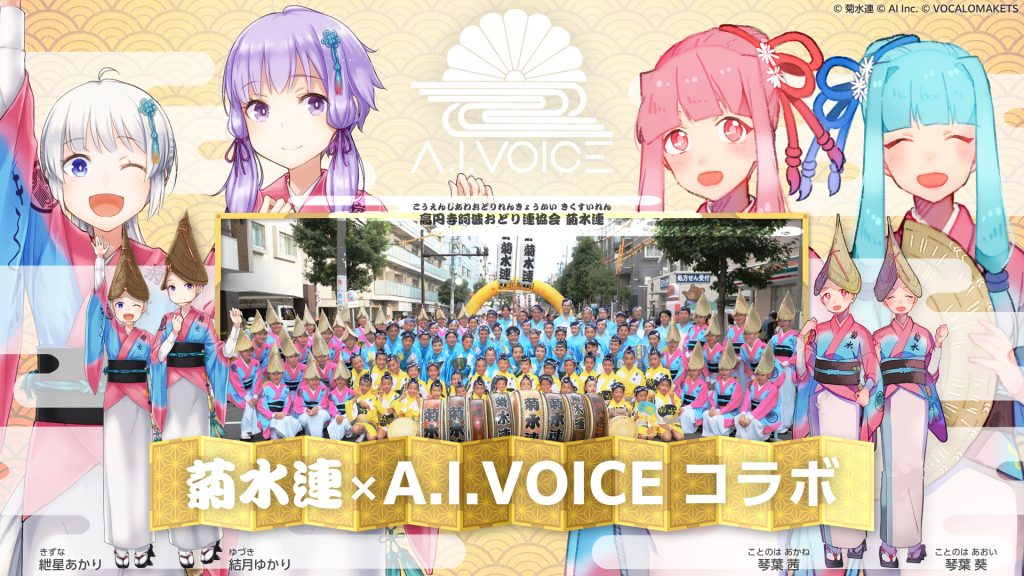 8月には高円寺阿波踊り連協会「菊水連」と音声合同ソフト「A.I.VOICE」のイベントがルック商店街で開催。