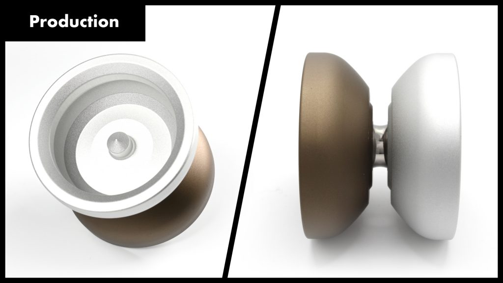 様々な事情でRawによる試作になりました。Smooth Ultimatte CoatingのかかっていないヨーヨーはMoNo 54mm 1st prototype以来で、新鮮な振り心地だったのをよく覚えています。Rawの仕上げということもあり、試作ではヨーヨーの回転力、動かしやすさ、重量感、それらのバランスを確認することに留めました。