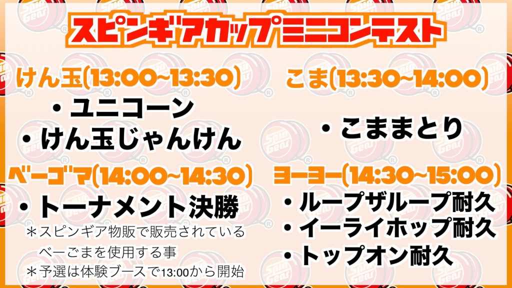 ヨーヨー、けん玉、こま、ベーゴマのミニコンテストを開催します。