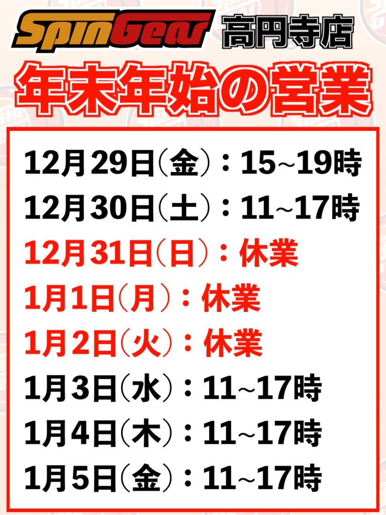 本日12月30日、高円寺店の本年の営業が終わりました。