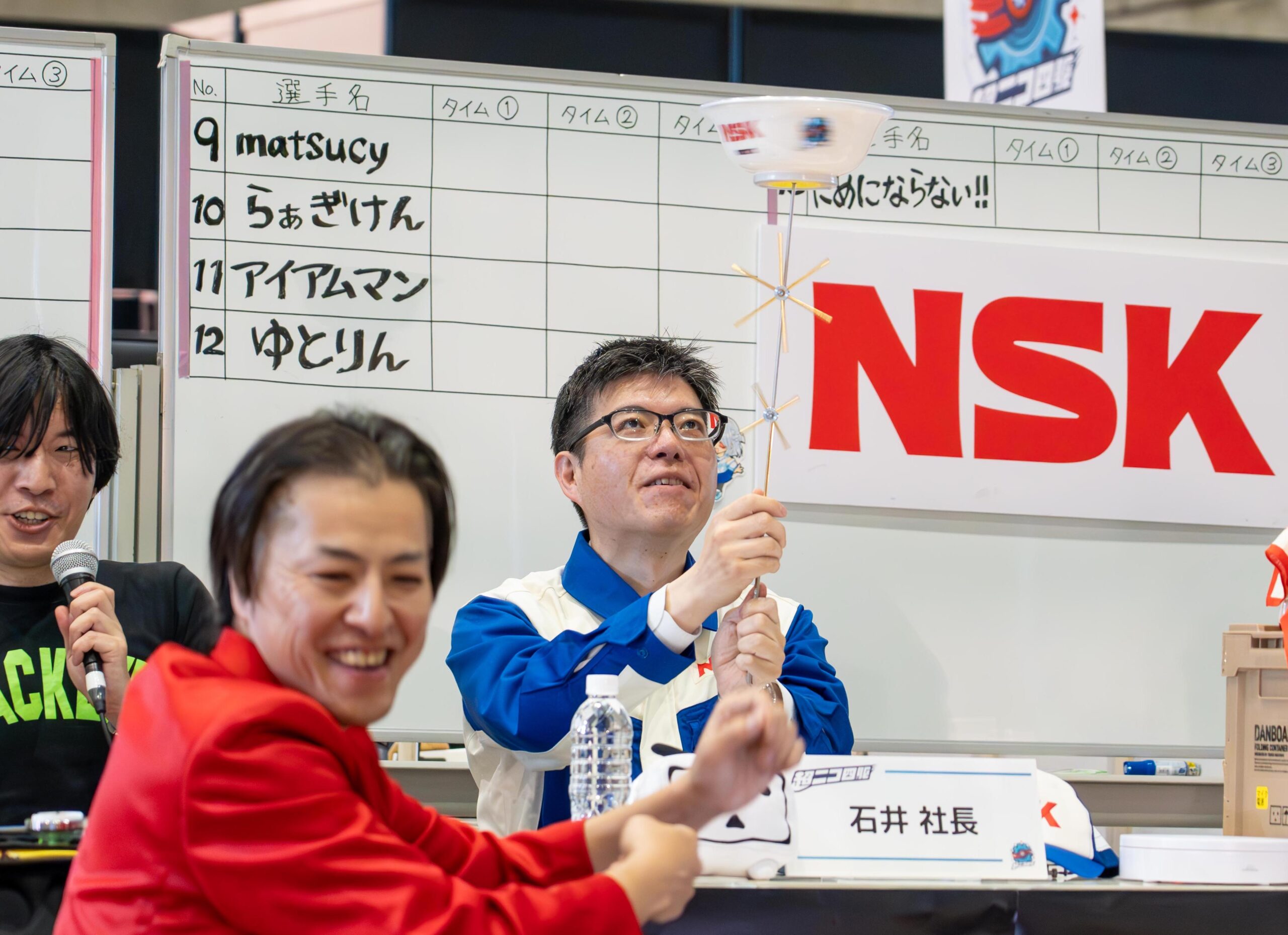 どんぶり回しも社長とコラボ