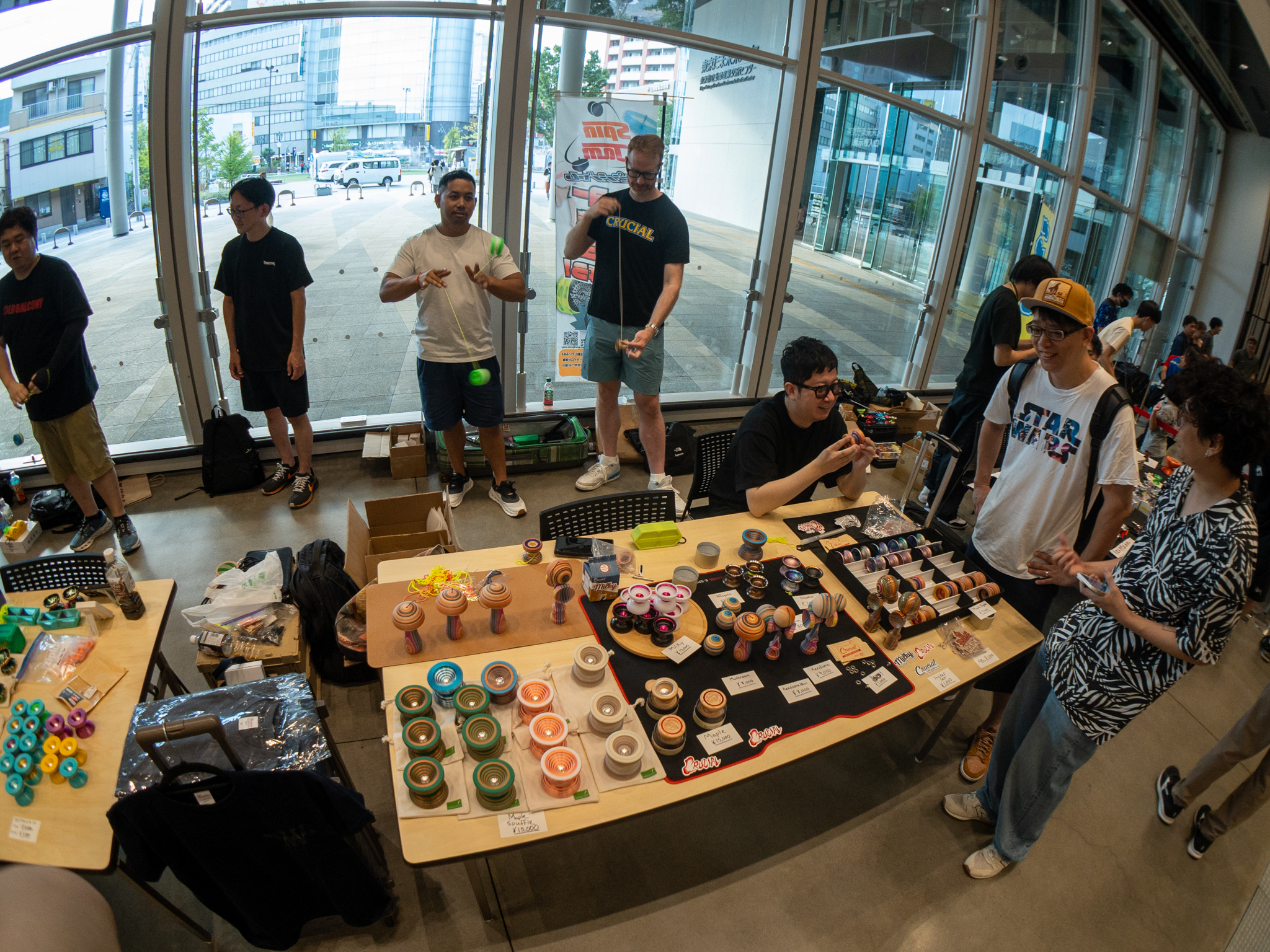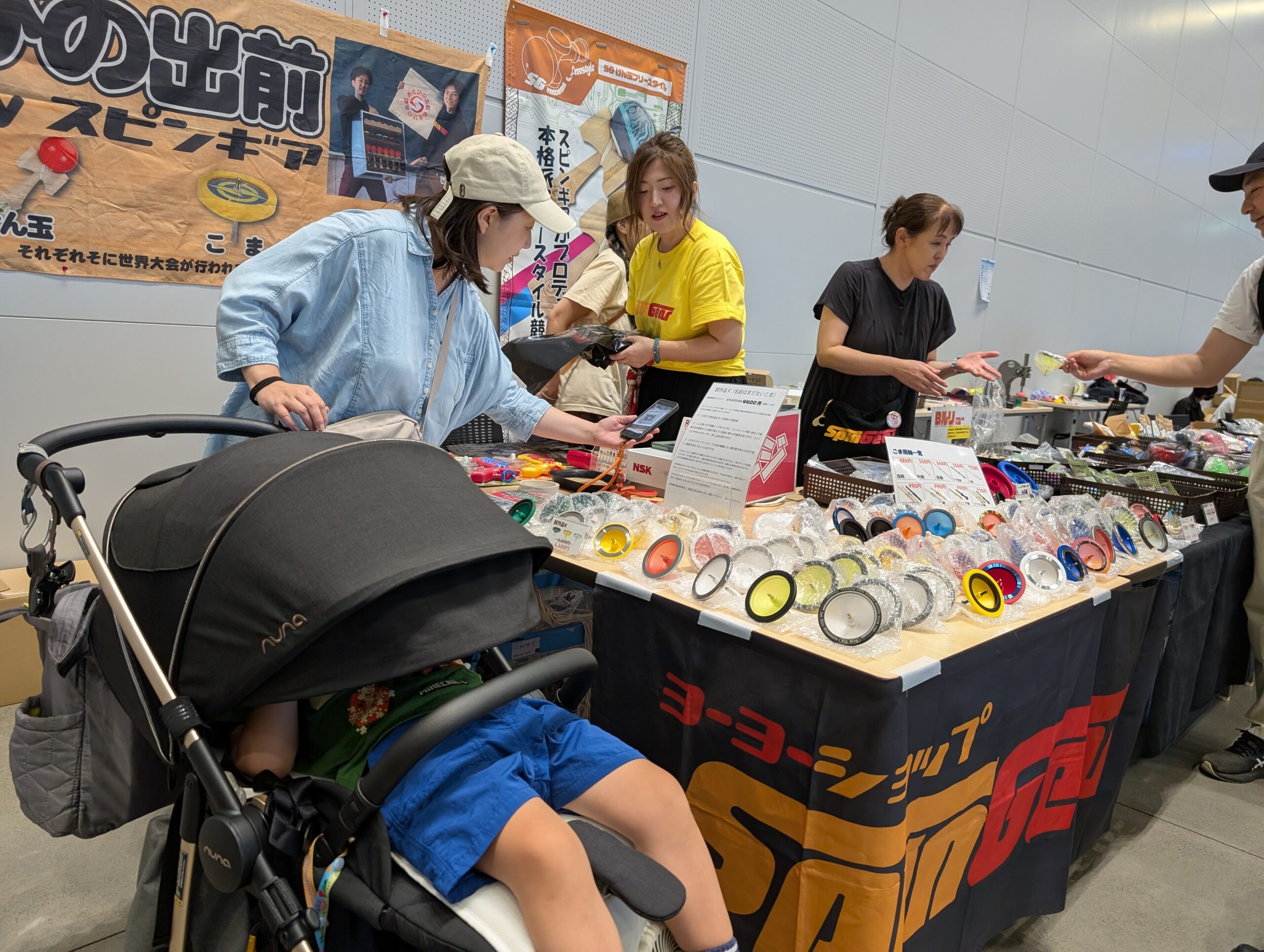 スピンギアではヨーヨー、こま、けん玉のほか、コンタクトジャグリング用のクリスタルボールも販売。