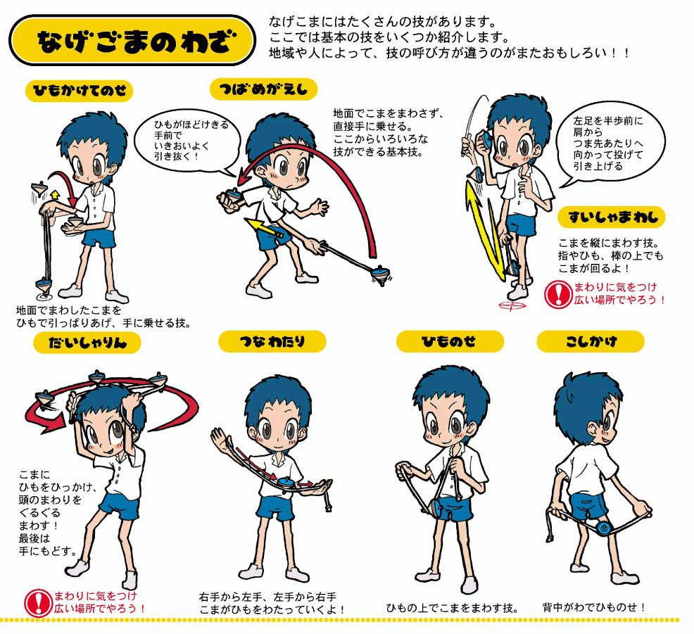 動画、引用の文章は日本こままわし協会の許諾を得て紹介させていただいています。技の解説、コツの説明はスピンギアのオリジナル部分となります。間違い等のご指摘はスピンギアまでお願いします。